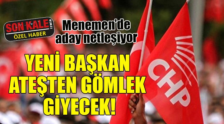 Başkanlık için Avukat Deniz Karakurt'un yanı sıra Çağlar Gülez, İhsan Perçin, Hasan Ünal ve Ali Yılmaz'ın isimlerinin geçtiği öğrenildi. İsmi geçen adaylar arasında daha önce Menemen Belediye Meclisi'nde faaliyet raporunu onaylamayan ve birçok uygulamaya doğru olmadığı gerekçesiyle karşı çıkan Deniz Karakurt'un bir adım önde olduğu iddia ediliyor.