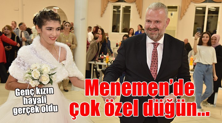 Özel gereksinimli Rabia Aktaş için dün tam anlamıyla düğün merasimi yapıldı. Öğle saatlerinde Egekent 2’deki evinden kuaför salonuna götürülen genç kızın burada gelin saçı ve makyajı yapıldı. Kuaförden ailesiyle yaşadığı eve geçen genç kız için annesi ve babası tarafından gelinliğiyle uğurlandı. Polis trafik ekiplerinin korteji eşliğinde düğün salonuna gelen genç kız, hem hayalini yaşadı hem de gönlünce eğlendi. Menemen Belediye Başkan Vekili Aydın Pehlivan da Rabia’nın mutluluğuna birlikte dans ederek ve halay çekerek ortak oldu. Temsili düğüne katılanlar da genç kızın mutluluğuna alkışlarla ve dans ederek eşlik etti.