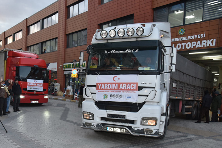 Menemenlilerin yardım için adeta birbirleriyle yarıştıkları ve yardıma koştuklarını anlatan Menemen Belediye Başkan Vekili Aydın Pehlivan, “Yüreğimizi parçalayan büyük deprem felaketinin ardından vakit kaybetmeden başlattığımız yardım çağrısına hemşehrilerimiz büyük bir fedakârlıkla cevap vererek kısa sürede ciddi miktarda bir bağışı bizlere teslim ettiler. Bizler de ekiplerimizin yoğun çalışmalarıyla hazırladığımız ikinci yardım tırlarımızı yola çıkardık. 10 tır dolusu yardım malzemesini daha afet bölgesine gönderdik. 6 tırımız afet bölgesine ulaştı. Diğer tırlarımız da ulaşmak üzere. Kamu kurumlarımız, sivil toplum kuruluşlarımız ve kıymetli hemşehrilerimizin yardımlarını depremzedelere ulaştırmak konusunda ciddi gayret ve özen gösteriyoruz. Yardımlar, hız kesmeden devam edecek. İrtibat noktalarında görevli olarak çalışan belediye personelimize, gönüllü olarak bulunan her meslek ve her yaştan hemşehrilerime yürekten teşekkür ediyorum” diye konuştu.
