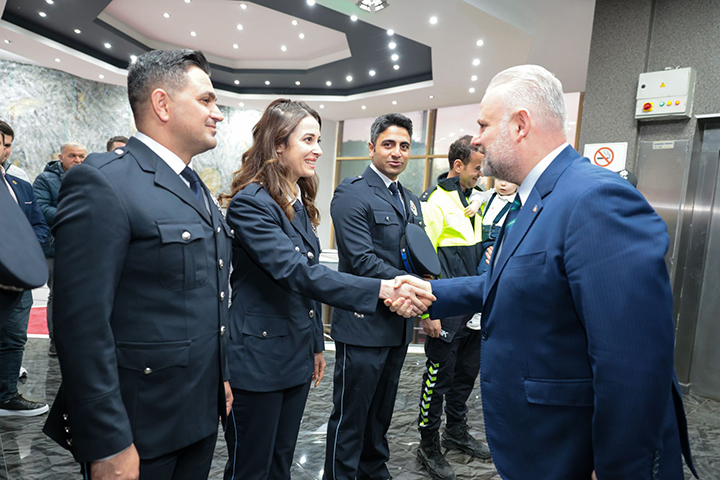 Menemen Belediye Başkanı Aydın Pehlivan ise yaptığı konuşma da, emniyet mensuplarına “Allah ayağınıza taş değdirmesin” diyerek seslendi. Pehlivan, “Polis demek huzur demek, emniyet demek, güven demektir. Polis demek; gecenin bir vakti bir annenin, bir babanın “evladım yolda kalmasın” diye içi rahat uyumasıdır. Polis demek; bir çocuğun sokağa çıktığında kendini koruma altında hissetmesidir. Ve polis demek; bu ülkenin sokaklarını karanlıktan aydınlığa taşıyan isimsiz kahraman demektir. Ulu Önder Gazi Mustafa Kemal Atatürk ne güzel söylemiş: “Herkesin polisi kendi vicdanıdır” diye. Fakat polis; vicdanı olmayanların karşısındadır. İşte sizler, vicdanı olmayanlara karşı milletin vicdanı oldunuz. Kadınımızın, çocuğumuzun, yaşlımızın, gencimizin yanında dimdik durdunuz. Allah sizlerden razı olsun. Biliyoruz ki zaman zaman haksız eleştirilere maruz kalıyor, hedef gösteriliyorsunuz. Ama unutmayın: Sizler bu milletin duasındasınız. Sizler İzmir Adliyesi önünde kendini siper ederek bir katliamı önleyen kahraman Fethi Sekin’in mesai arkadaşısınız. Sizler bu milletin emanetini omuzlarında taşıyan, şehitlerin yoldaşısınız. Sizler bu millet için şehit olanların bizlere emanetisiniz. Sizler Menemen’de bir gün bile görev yapmış olsanız, artık bizim hemşehrilerimizsiniz.” dedi.