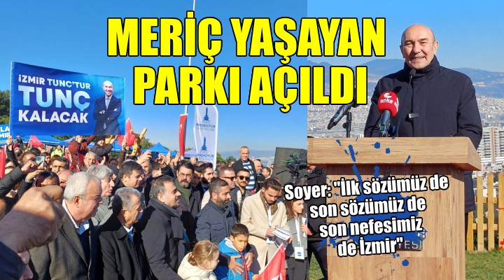 SONKALEİZMİR-Meriç Yaşayan Parkı'nın açılış törenine İzmir Büyükşehir Belediye Başkanı Tunç Soyer'in yanı sıra CHP Bornova İlçe Başkanı Ertürk Çapın, muhtarlar ve yüzlerce yurttaş katıldı. "İzmir Tunç'tur Tunç kalacak" sloganları ile kürsüye çıkan Başkan Soyer, Bornova MTK-Moda Tekstil Konfeksiyoncular sitesinin yanında 60 bin metrekare alan üzerinde oluşturulan parkın 35 yaşayan park sözünün 6.'sı olduğuna dikkat çekti. Soyer şöyle konuştu:
