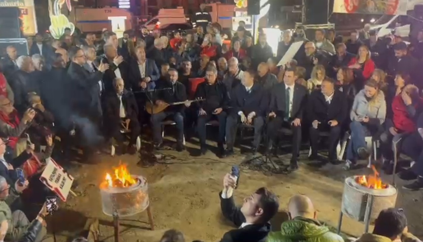 İzmir Büyükşehir Belediye Başkanı Cemil Tugay, CHP İzmir İl Başkanı Çağatay Güç, CHP Ankara Milletvekili Umut Akdoğan, ilçe belediye başkaları, ilçe başkanları ve partililer ateşin başında buluştu. CHP Parti Meclisi üyesi Tolga Sağ türkülerle direnişe destek verdi.