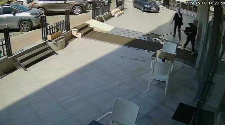 Kadınların apartmana girişi, birinin kapıda gözcülük yapması ve iki kadının çantayla apartmandan ayrıldığı anlar, güvenlik kamerasına yansıdı.
