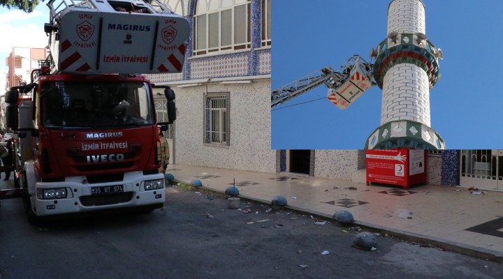 İzmir'in Karabağlar ilçesinde fırtına, bir caminin minaresindeki beton parçalarının düşmesine neden oldu.