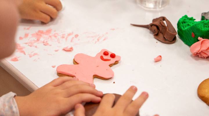 Yılbaşı temasına özel olarak kar tanesi, baston şemsiye, kardan adam ve yılbaşı şapkası gibi farklı şekillerde kurabiyeler yapan çocuklar, gönüllerince bir gün geçirdi. Pastacılık dersi eğitmen şefi Ece Eryener’in rehberliğinde, Gastronomi ve Mutfak Sanatları Bölümü öğrencileriyle çalışarak renkli şeker hamurlarına şekil veren, birbirlerinin kurabiyelerini süsleyen ve merak ettiklerini soran çocuklar, eğlenirken öğrenme fırsatı buldu.