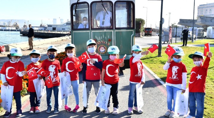 İzmir’de Cumhuriyet Bayramı kutlamaları coşkuyla sürüyor. İzmir Büyükşehir Belediyesi İZELMAN Anaokulları’nın öğrencileri, Cumhuriyet Bayramı’nı nostaljik tramvay gezisiyle kutladı. Güzelyalı Nene Hatun ve Gürçeşme Zübeyde Hanım Anaokullarında eğitim gören öğrenciler, İzmir Metro A.Ş.’nin işlettiği ‘Boyoz’ adlı nostaljik tramvay ile İzmir Limanı – Cumhuriyet Meydanı güzergâhında tur attı. Miniklerin coşkusu görülmeye değerdi.