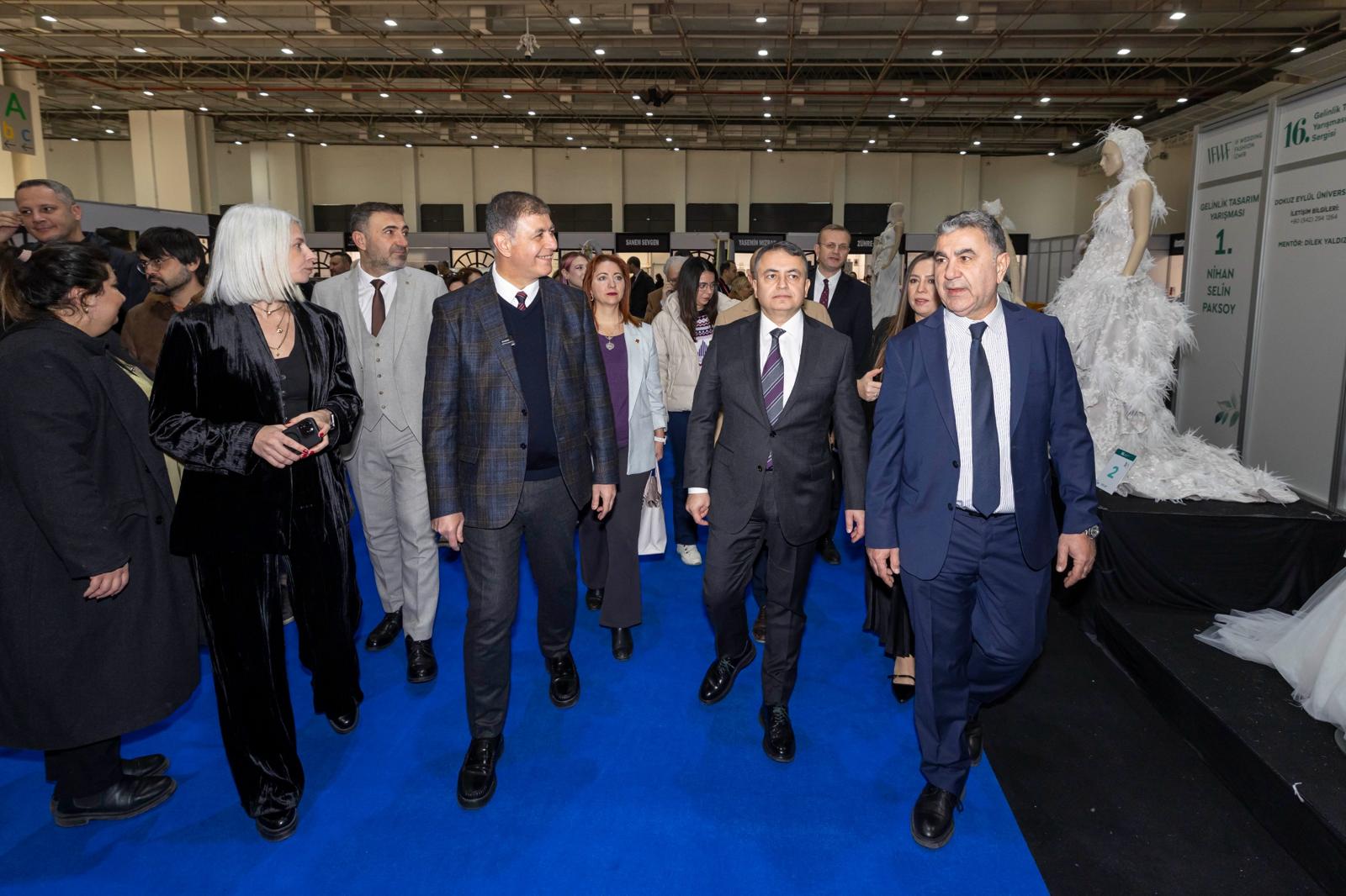 İzmir’in sektördeki rolüne de dikkat çeken Başkan Tugay, “Gururla ifade etmeliyim ki İzmir, bu sektörün sadece Türkiye’deki lokomotifi değil, aynı zamanda küresel bir üretim merkezidir. Ülkemizdeki gelinlik üretiminin yüzde 70’i, bini aşkın firmamızın alın teriyle güzel İzmir’imizde gerçekleştiriliyor. Avrupa’dan Orta Doğu’ya, Amerika’dan Asya’ya kadar dünyanın dört bir yanındaki gençlerin en mutlu günlerine İzmir imzası atılıyor. On binlerce hemşehrimize aş ve iş imkânı sağlayan bu büyük ekosistemi korumak ve büyütmek hepimizin önceliği olmalıdır” ifadelerini kullandı.