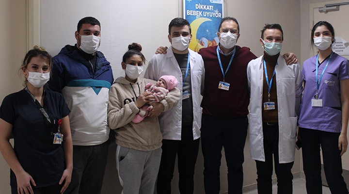 Öte yandan yüksek ölüm riski olan bebeğini sağlıkla kucağına alan anne Vatansever, “Benim kızım mucize bebek. Bana hamileyken bu hastalık yüzünden kızımın engelli doğabileceği, ölebileceği söylenmişti. Ailem bunları duyunca yıkıldı. Doktorlar konsey kararıyla bebeğimi aldırabileceğimi söyledi. Doğsa da ölse de benim bebeğim dedim, kabul etmedim. Gebeliğimin 35’inci haftasında riskli gebelik nedeniyle hastaneye yattım. 36’ncı haftada bebeğim 46 santim boyunda, 2 kilo 780 gram ağırlığında dünyaya geldi. Doğumdan sonra beni yoğun bakıma kaldırdılar, iki gün kaldım. Bebeğimi ise ameliyat için İzmir Kent Hastanesi’ne göndermişler. Ben ancak 2 haftalıkken gelip görebildim. 53 gün sonra artık bebeğimizi evimize götürebiliyoruz. İyi ki bebeğimden vazgeçmemişim. Başta Tunç Bey olmak üzere kızımı yaşatan, büyüten tüm hekim ve hemşirelere sonsuz teşekkürler” diye konuştu.