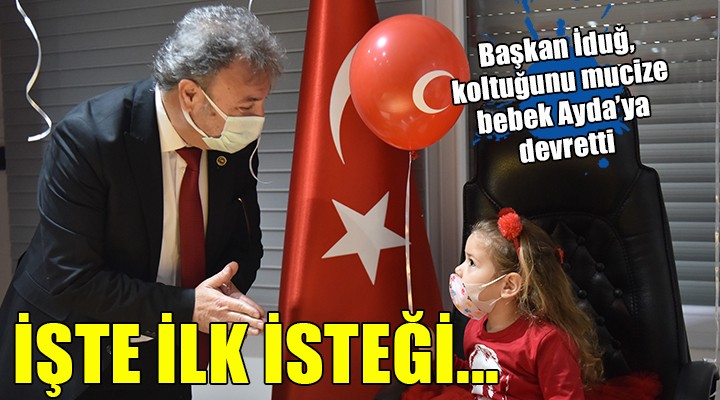 23 Nisan Ulusal Egemenlik ve Çocuk Bayramı'nın Atatürk’ün dünya çocuklarına emaneti olduğunu belirten ve minikleri kutlayan Başkan Mustafa İduğ, Ayda bebeğe başkan olarak ne yapmak istediğini sordu. Ayda'dan "Okula gitmek istiyorum" yanıtı alan Başkan İduğ, "Söz veriyoruz. Kısa zaman sonra bu salgından kurtulduktan sonra anaokulunu açacağız, parklar yapacağız” diye konuştu.