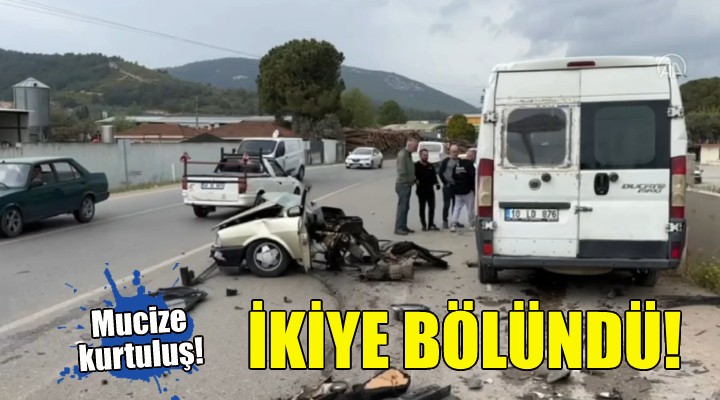 Çarpışmanın etkisiyle otomobilin motor ve torpido bölümü koparak savruldu, koltuklar ve arka bölüm ise yaklaşık 10 metre geride kaldı.