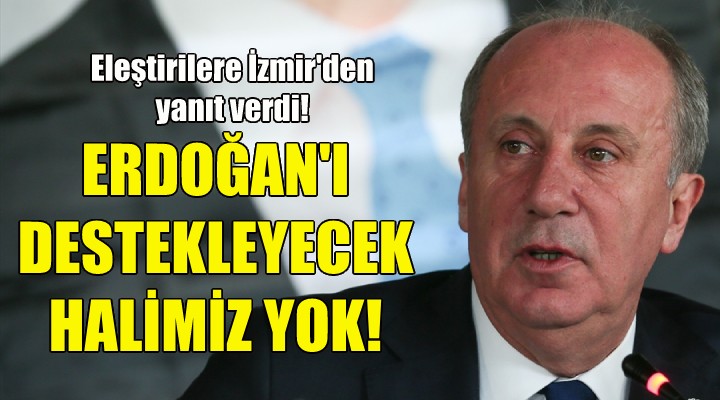 Millet İttifakı'nın cumhurbaşkanı adayını açıklamamasına da değinen İnce, "Hiçbiri kendine güvenemiyor, 'Ben Erdoğan'ı yenerim' diyemiyor. Ben diyorum, onu yenerim diyorum. Muhalefet, adayını erken belli etmeyecekmiş, yıpranırmış. 20 senedir Erdoğan orada yıpranmıyor da sen niye yıpranıyorsun ?" değerlendirmesinde bulundu.