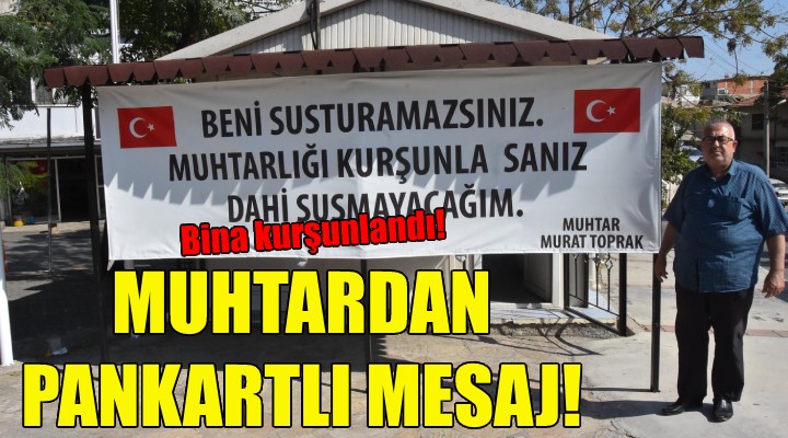 Kurşunlama olayının, İzmir'in en büyük ilçelerinden biri olan Karabağlar'daki yolsuzlukları mahkemeye taşıdığı için yaşandığını iddia eden Osman Aksüner Mahallesi'nin muhtarı Murat Toprak ise kararlılığını göstermek için pankartı astığını söyledi. Toprak, "Bu pankart Murat Toprak'ın susmayacağının işaretidir. Kurşunlama olayından sonra pankartı astım. Muhtarlık kapalıyken ateş edilmiş. 5 kurşun izi vardı. Şikayetçi olduk. Yakalanan olmadı. Birilerine diyorum ki 'Karabağlar'daki tüyü bitmemiş yetim hakkını yiyenlerden hesap soracağım'. Bu kadar basit. Adı ne olursa olsun. Pankartı astıktan sonra kimse aramadı. Beni arayacak cesaretleri yok. Pankartı görünce beni tanıyan vatandaşlardan arayıp, 'geçmiş olsun' diyenler oluyor" diye konuştu.