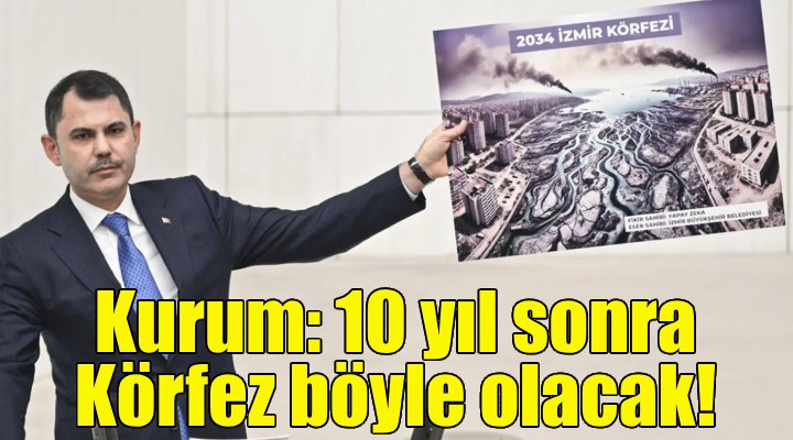 Konuşmasında İzmir Körfezi'nde yaşanan kirlilik ve balık ölümlerine de değinen Bakan Kurum, yapay zeka ile tasarlanmış Körfez’in 10 yıl sonraki halini resmeden bir görseli milletvekillerine gösterdi. Kurum, şunları söyledi: