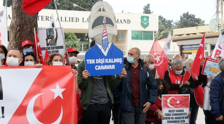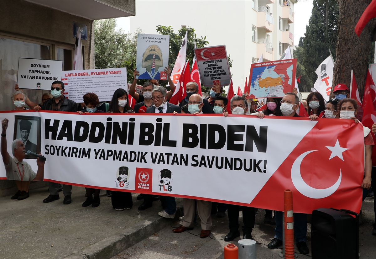 Karargah önünde toplanan grup, slogan atarak ABD Başkanı Biden'ı ve soykırım nitelemesini protesto etti.