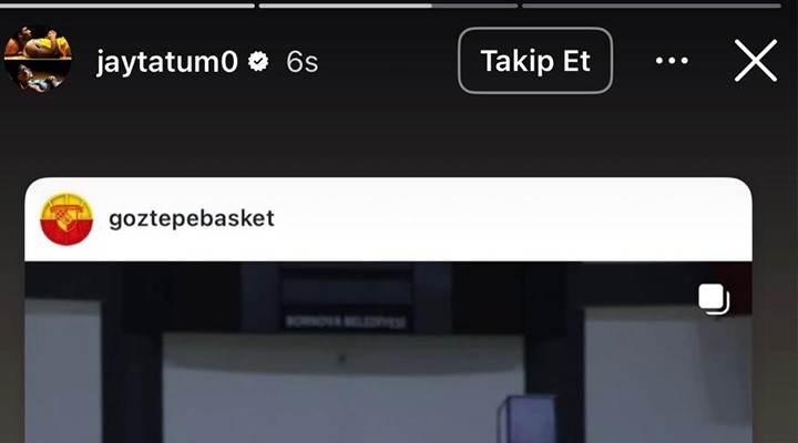 Türkiye Basketbol Ligi’ndeki İzmir ekibinin bu sene kadrosuna kattığı Jordan Barnes’ı antrenman yaparken yaptığı paylaşımı Tatum da 7,3 milyon takipçili sosyal medya hesabından yayınladı. Barnes’ın Tatum ile lise takımından arkadaş oldukları öğrenildi. Temmuz ayında Göztepe’ye imza atan 27 yaşındaki guard Barnes geçen sezon da ülkemizde forma giymişti.