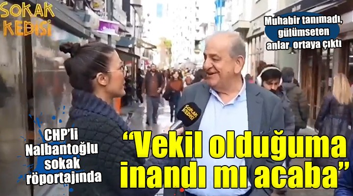 SONKALEİZMİR-CHP İzmir Milletvekili Rıfat Nalbantoğlu, Alsancak'ta yürürken Sokak Kedisi olarak bilinen sosyal medya kanalanın muhabiri ile sokak röportajı yaptı. Kendisini tanımayan muhabirin uzattığı mikrofona normal bir yurttaş gibi cevaplar veren Nalbantoğlu, röportaja ait görüntüyü de sosyal medya hesabından paylaştı. Muhabirin İzmir Büyükşehir Belediye Başkanı Tunç Soyer'in performansı ile ilgili sorular sorduğu Nalbantoğlu, Başkan Soyer'e 10 üzerinden 10 puan verdi. Öne çıkan projelerle ilgili de Buca Metrosu'na dikkat çekti.