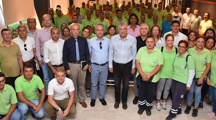 Narlıdere Belediyesi’nin Park-Bahçeler ve Temizlik işleri çalışanları birlik ve dayanışma toplantısında bir araya geldi. Atatürk Kültür Merkezi’nde gerçekleşen buluşmaya, personeller ile birlikte başkan yardımcıları ve bürokratlar da katıldı. İşçilerle tek tek tokalaşan Başkan Ali Engin, mesai arkadaşlarını, çalışmalarından dolayı tebrik etti.