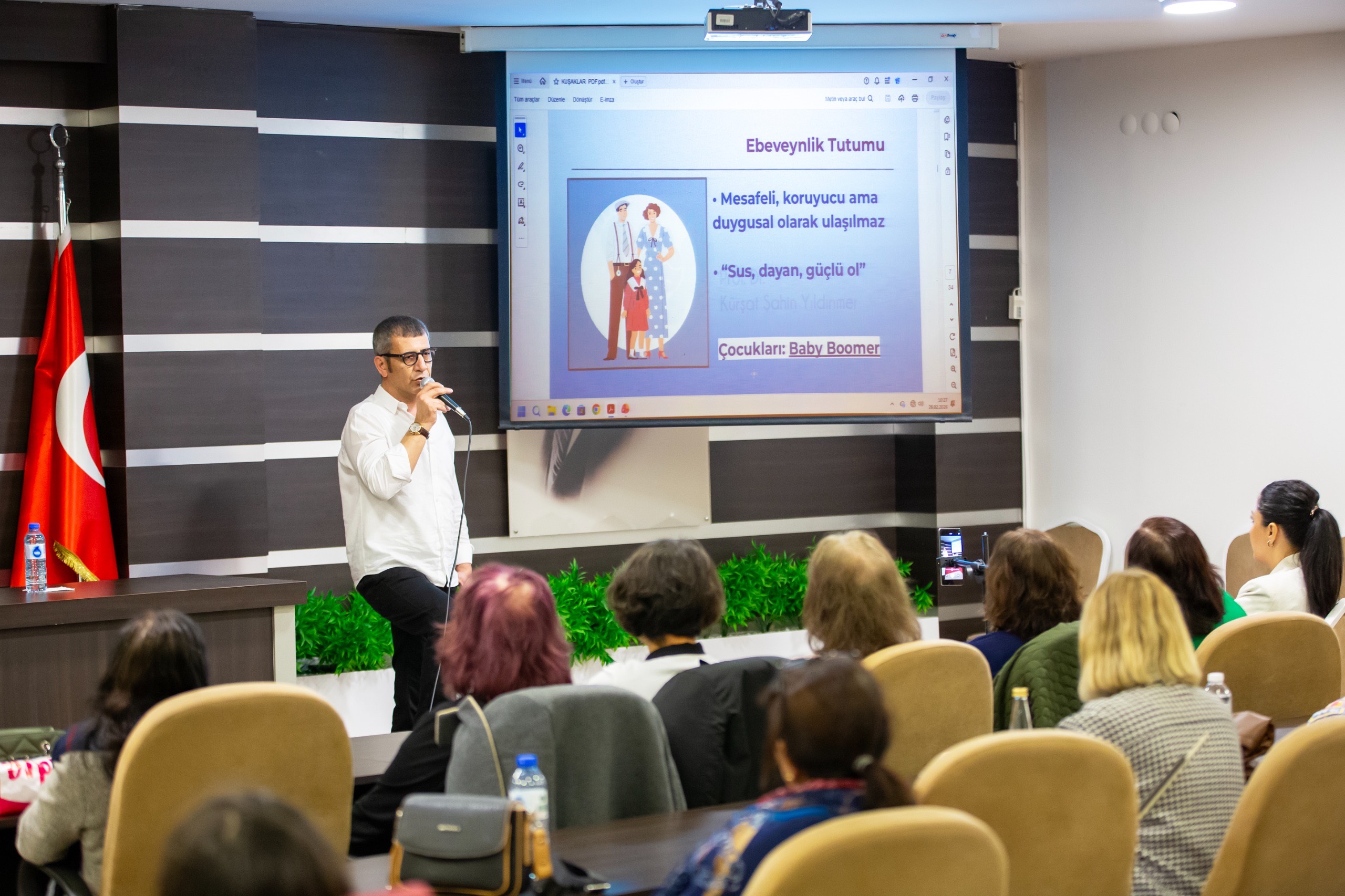 Seminerin ilk bölümünde söz alan Prof. Dr. Kürşat Şahin Yıldırımer, kuşakların karakteristik özelliklerine dikkat çekti. Yıldırımer, “Her kuşak, bir öncekinin travmasına tepki olarak yetişir. Ancak iyileştirmek isterken, çoğu zaman yeni bir kırılganlık üretir” diye konuştu.