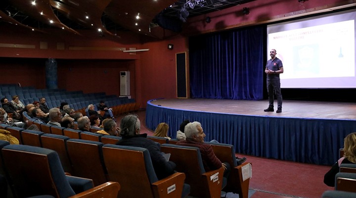 İzmir Büyükşehir Belediyesi İzmir İtfaiyesi Eğitim Sorumlusu Mesut Topal, olası afetlere karşı her zaman hazırlıklı olmanın önemini yaşanan son deprem felaketinde gördüklerini ifade ederek, “Yaşananlardan büyük dersler çıkarmalıyız. Mahalle Afet Gönüllüleri Projesi’ni bu yüzden çok önemsiyoruz. Son depremde 7 bine yakın insanı komşuları çıkardı. Çünkü afetin ilk anlarında trafik, insan akını vb. durumlar oluyor. Bu yüzden o mahalleyi, toplanma alanlarını bilen insanlar çok önem taşıyor. Ciddi afetlerde sokaklar tanınmaz hale geliyor. Profesyonel destek ekiplerine bilgi verecek, o çevreyi tanıyan insanların afet bölgesinde bulunması gerekiyor” dedi. Olası deprem anlarında koridor, merdiven boşluğu gibi alanlara gidilmemesi gerektiğini dile getiren Topal, “Buralarda sizi koruyucu hiçbir şey yok. Kanepe, koltuk gibi eşyaların yanında vücudunuzu küçültün. Bölge dışından biriyle iletişim kurmaya çalışın. Çocukların enkazdan daha çok sağ çıkmasının sebebi yaşam alanlarının daha küçük olması” diye konuştu.