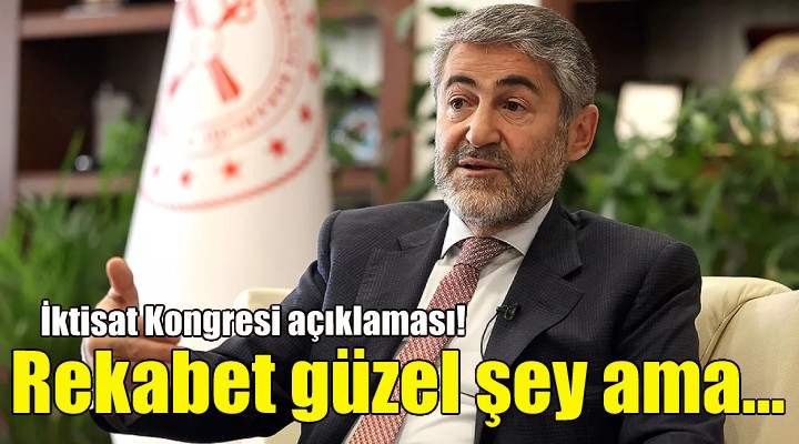 İzmir Büyükşehir Belediye Başkanlığının da bir İzmir İktisat Kongresi organize ettiğine dikkati çeken Nebati, "Rekabet güzel şey ama bir ülke ekonomisini yöneten merkezi hükümettir yani Ankara'dır. Bu bir ulusal program, rekabetten ziyade burada birlikte hareket edilebilirdi. Bunun artısı şu, oteller dolacak, İzmir'in tanıtımı yapılacak, İzmir konuşulacak böylesi bir ortamda. Biz İzmir’i desteklemiş olacağız ama tabii ki hedefimiz Türkiye ekonomisi" ifadelerini kullandı.