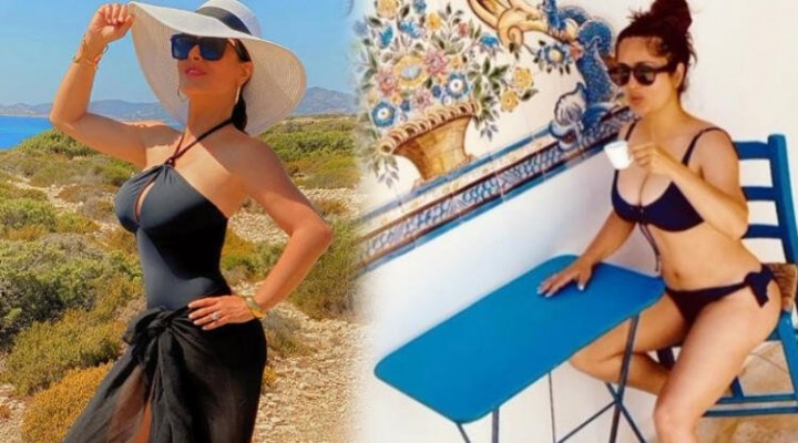 Hayek mayolu bir fotoğrafına yer verirken, düzgün fiziğiyle yıllara meydan okudu.
