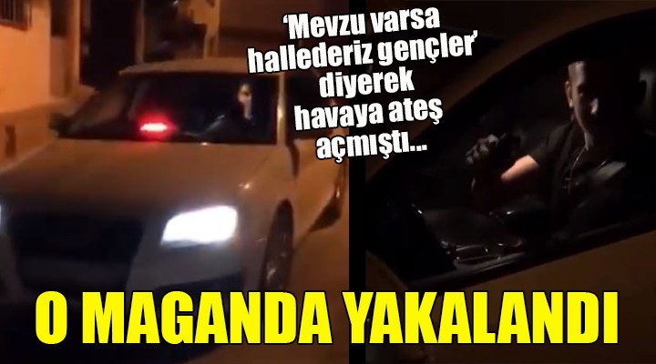 Karabağlar ilçesi Salih Omurtak Mahallesi'nde çakar takılı beyaz bir otomobilden peş peşe 6 el ateş açıldı. Otomobil sürücüsü, bu sırada kendisini cep telefonu kamerasıyla görüntüleyen kişinin yanına gelip, 'Mevzu varsa hallederiz gençler' diyerek tabancayı gösterip, uzaklaştı. Sosyal medyada paylaşılan video tepki çekerken, Karabağlar İlçe Emniyet Müdürlüğü Suç Önleme ve Soruşturma Büro Amirliği ekipleri, şüphelinin yakalanması için çalışma başlattı. Ekipler, otomobilinden tabancayla ateş açan kişinin A.G. olduğunu belirledi. A.G., Torbalı ilçesinde yakalanarak gözaltına alındı. A.G.'nin Karabağlar ilçesindeki adresinde yapılan aramada, olayda kullandığı kurusıkı tabanca bulundu. Emniyete götürülen A.G. hakkında, 'Kasten güvenliğin tehlikeye sokulması' suçundan adli işlem yapıldığı öğrenildi.