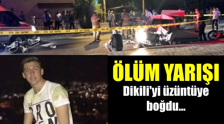 İddiaya göre, Dikili Salihler'de Furkan Sonbahar (17) idaresindeki 35 JA 5357 plakalı motosikletle Raşit Boztepe'nin (18) kullandığı plakasız motosiklet yarışa tutuştu. Uğur Mumcu Caddesi'ne gelindiği sırada, sürücüsü henüz belirlenemeyen 35 AHN 446 plakalı otomobill, iki motosikletliye çarptı. Ortalık savaş alanına dönerken motosiklet sürücülerinden Sonbahar, kaza yerinde yaşamını yitirdi. Plakasız motosikletin sürücüsü Boztepe ile otomobilde bulunan 3 kişi yaralandı.