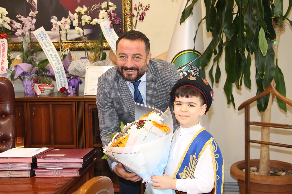23 Nisan Ulusal Egemenlik ve Çocuk Bayramı’nın 104. Yılı kutlama etkinlikleri kapsamında Beyaz Altay Gündüz Bakımevi öğrencilerinden Kaan Bağçivan, Belediye Başkanı Mustafa Turan’ı ziyaret etti. Ziyaret esnasında Başkan Turan koltuğunu Kaan Bağçivan’a bıraktı.