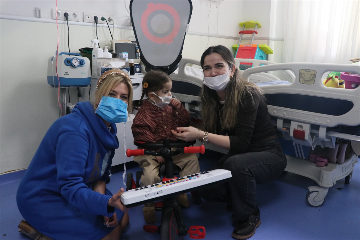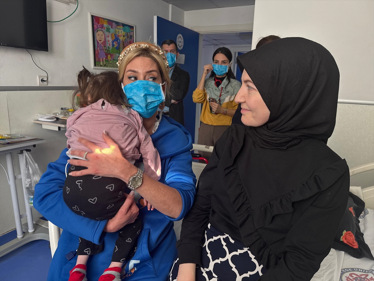 Anne Yıldırım ve 10 yaşındaki oğlu Kartal Yıldırım, Ege Üniversitesi Çocuk Hastanesi'nde kalp nakli olmayı bekleyen çocukları ve ailelerini ziyaret etti, onlara moral verdi.