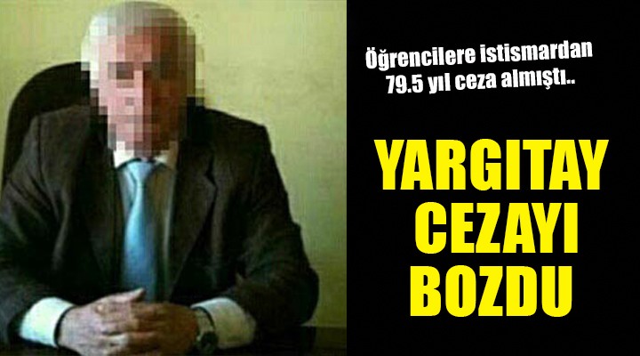 Yargıtay ise kararı, usulde eksiklikler bulunduğu gerekçesiyle bozarak yerel mahkemeye gönderdi. Geçen nisan ayında İzmir 8'inci Ağır Ceza Mahkemesi'nde yeniden yapılan yargılamada mahkeme heyeti, tutuklu sanığı 4 mağdura 'çocuğun cinsel istismarı' suçundan önce 8'er yıl hapis cezası verdi. Sanığın mağdurlarının okulunda müdür vekili olmasını göz önüne alıp, cezaları 15'er yıla çıkardı. Şahintürk'e başka bir mağdura 'çocuğun cinsel istismarı' suçundan da 12 yıl hapis cezası verdi. Sanık, İzmir 8. Ağır Ceza Mahkemesi tarafından bir mağdura karşı 'sarkıntılık' ve 'müstehcen yayın izletme' suçlarından aldığı ve temyiz sınırlaması altında kaldığı için kesinleşen 7,5 yıl hapis cezasıyla toplam 79,5 yıl hapis cezasına çarptırıldı.