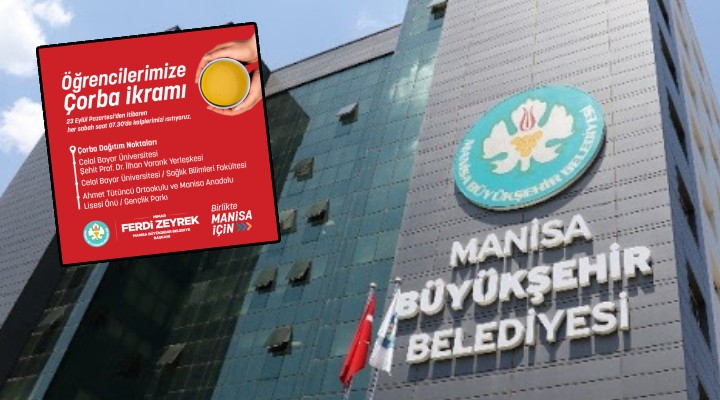 Sosyal belediyecilik uygulamalarıyla öğrencilerin yanında olan Manisa Büyükşehir Belediyesi, günaydın çorbası ikramında bulunmaya hazırlanıyor. Manisa Büyükşehir Belediye Başkanı Mimar Ferdi Zeyrek’in öğrencilere sözü olan günaydın çorbası, 23 Eylül Pazartesi günü öğrencilere ikram edilmeye başlanacak.