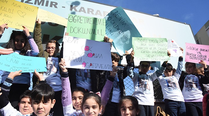 Basın açıklamasını okuyan veli Nilhan Dağdelen, öğretmen G.B.'nin bir iftiraya maruz kaldığını belirterek, şöyle dedi: "En kötü gününde, sesi çıkmayacak kadar hasta oluğunda bile derse gelen, desteği ile velileri de hiç yalnız bırakmayan biridir G. öğretmen. Kimimiz buraya İzmir'in bir ucundan geldi. Çükü kimimiz yuvasının tüm sırlarını evladı için G. öğretmenle paylaştı, kimi çalıştığı için yavrusunun ateşini G. öğretmenden öğrendi. Bu güzellikleri ve iyilikleri inkar edebilir miyiz? İngilizce kitabını getirmediği için çocuğunun darp edildiğini iddia eden veli bilsin ki, İngilizce dersi veren öğretmenimiz zaten G. hocamız değil. İngilizce dersinin olduğu gün de olayın meydana geldiği Cuma günü değil, bir önceki Cuma günüdür. Tüm iddialar, hayatın normal akışına uymuyor. Hakkında bu kadar şikayet dilekçesi verdiğiniz, taciz ettiğiniz ve hatta darp ettiğiniz öğretmenin, 3 buçuk yıldır kendi iradenizle velisi olduğunu hatırlatmak isteriz. Bizler, vatanına, bayrağına, öğretmenine, büyüklerine, arkadaşlarına önce saygı, ayağının dibindeki kediye, böceğe bile sevgiyle yaklaşan insanlar olarak G. öğretmenimizin her daim yanında olacağız." Veliler, basın açıklamasının okunmasının ardından dağıldı.