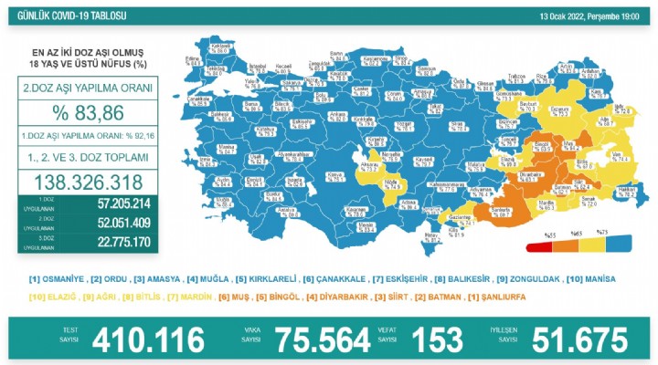 Koronavirüs salgınında Omicron varyantının etkisi devam ediyor. 13 Ocak verilerine göre virüs nedneiyle 153 yurttaş daha yaşamını yitirdi.