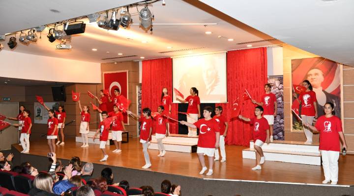 Çiğli Belediyesi tarafından düzenlenen etkinlikte genç tiyatro ekibi, Gazi Mustafa Kemal Atatürk’ün önderliğinde kurulan Cumhuriyet’in kazanımlarını, fedakarlıkla verilen bağımsızlık mücadelesini ve aydınlanma yolculuğunu sahneye taşıdı. Gençler, şiir, şarkı, marş, Gençliğe Hitabe ve Zeybek gösterisi gibi performanslarla izleyicilere duygu dolu anlar yaşattı. Etkileyici sahne performanslarıyla büyük beğeni toplayan ekip, uzun süre ayakta alkışlandı.