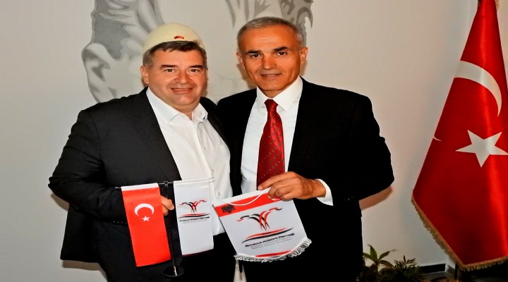 Alaçatı-Çeşme Arnavut Kültür Derneği Başkanı İbrahim Topal, Çeşme Belediye Başkanı Ekrem Oran'ı makamında ziyaret etti