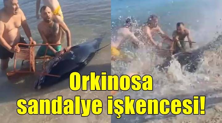 Çeşme ilçesinde, dün kıyıya vuran orkinosu gören plajdaki bazı kişiler, balığı sandalyeyle kıyıya çıkarmaya çalıştı. Sandalyeden kurtulan orkinos, denize geri dönüp gözden kayboldu. O anlar, çevredekiler tarafından cep telefonuyla kayda alındı. Sosyal medyada paylaşılan görüntüler tepkilere neden oldu.