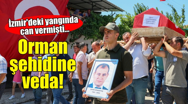 Bergama'da Çobanlar mevkisinde çıkan yangına müdahale sırasında dün orman işletme müdürlüğüne ait pikabın devrilmesi sonucu yaralanarak kaldırıldığı hastanede şehit olan Dönertaş'ın cenazesi, helallik alınması için Bergama Orman İşletme Müdürlüğü önüne getirildi.