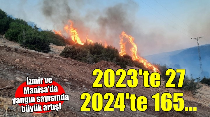 İzmir ve Manisa'da geçen yıla göre orman yangını sayısı büyük artış gösterdi. Orman Bölge Müdürlüğü verilerine göre 1-21 Haziran 2023 tarihleri arasında 27 yangın çıkarken, 2024'te aynı dönemde 165 yangına müdahale edildi.