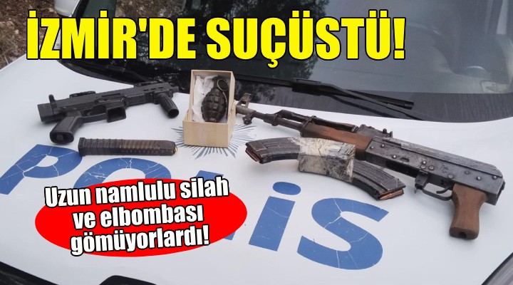 Ormanlık alana uzun namlulu silah ve el bombası gömerken yakalandılar!