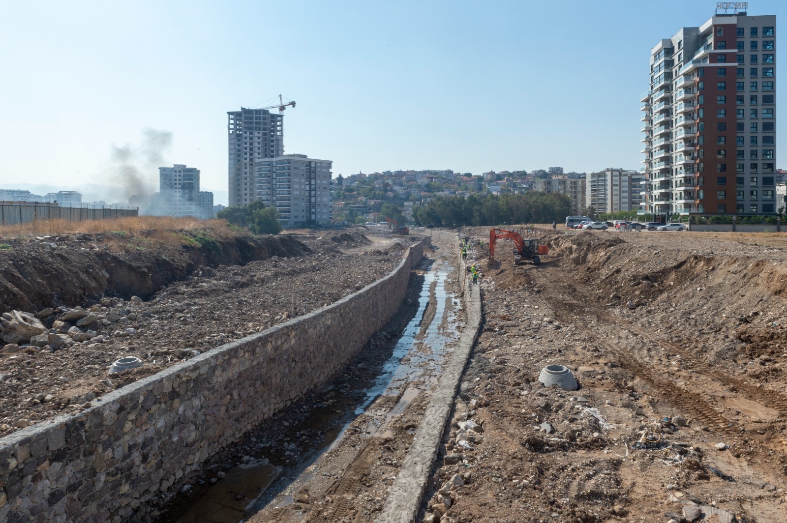 Islah çalışması kapsamında kanalizasyon şebekesi de dere yatağından çıkarılıyor. İmalatları devam eden 900 metrelik yeni atık su hattı, kirli su akışını engelleyerek derenin temiz akmasını sağlayacak.