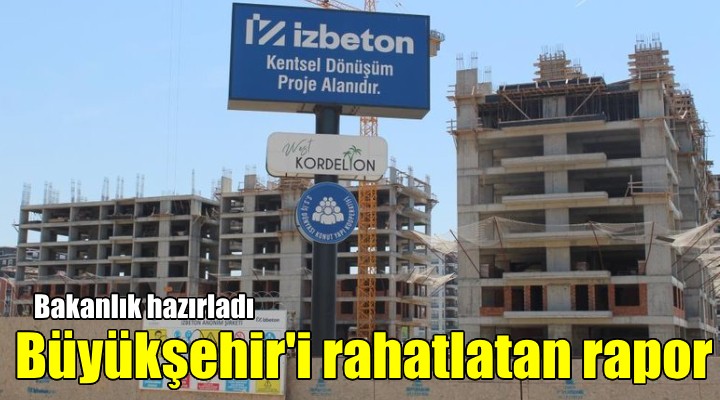 Bakanlığın inceleme çalışmaları sonrası bir rapor hazırlandı. Bakanlığın raporunda, İzmir Büyükşehir Belediyesi'ni rahatlatan bulgular tespit edildi. Rapora göre mühürlenen bina dışındaki 8 ayrı parselde bulunan binaların beton ve demir oranlarının projeye uygun olduğu belirlendi. Raporda yaş beton basınç deney raporları ile çelik çubuk deney raporlarının projede belirlenen raporlarla uyumlu olduğu aktarıldı.