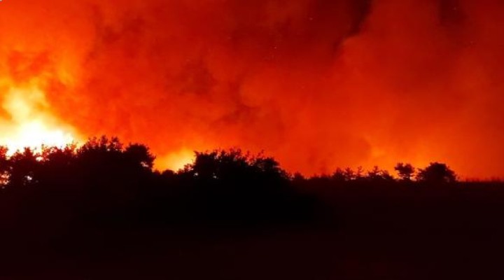 Yerleşim yerlerine sıçrayan, evlerin ve bahçelerin yandığı, ahırlardaki havyanların da öldüğü yangın, gece karadan yapılan müdahaleye rağmen kontrol altına alınamadı. Poyrazın etkisiyle hızla büyüyen yangını söndürmek için ekiplerin karadan ve havadan müdahalesi devam ediyor.