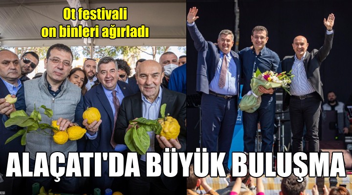 Çeşme Belediyesi tarafından 11’incisi bu yıl düzenlenen Alaçatı Ot Festivali’nin son gün etkinliklerine ev sahibi Çeşme Belediye Başkanı Ekrem Oran ve İzmir Büyükşehir Belediye Başkanı Tunç Soyer'in yanı sıra İstanbul Büyükşehir Belediye Başkanı Ekrem İmamoğlu, Kadıköy Belediye Başkanı Şerdil Dara Odabaşı, CHP Parti Meclisi Üyeleri Devrim Barış Çelik ve Semra Dinçer, parti temsilcileri, şehir içinden ve dışından çok sayıda belediye başkanı, belediye meclis üyesi ve yurttaşlar katıldı. Üreticilerin bulunduğu stantları gezip sohbet eden başkanlar İmamoğlu, Soyer ve Oran, coşkulu kalabalığın büyük ilgisiyle karşılaştı.