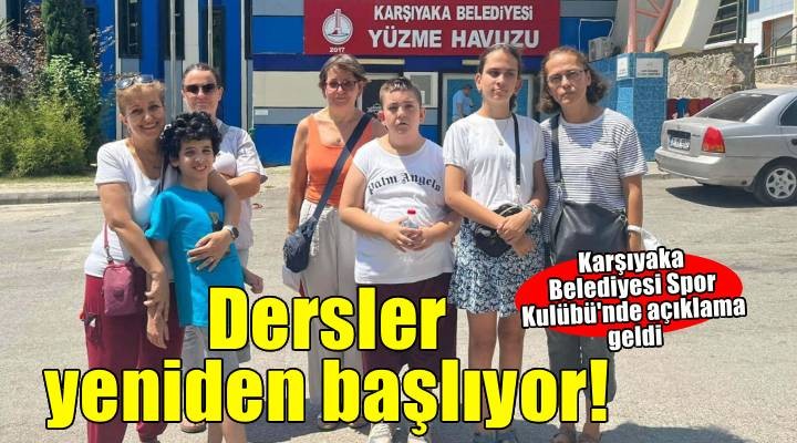 Karşıyaka Belediyesi Spor Kulübü'nün yazılı açıklamasında, "Özel eğitime uygun eğitici eksikliğinden ve yaz döneminde olmamızdan kaynaklı bu sorunu eylül ayı itibarıyla çözüme kavuşturacağız ve kayıtlarımızı almaya yeniden başlayacağız" denildi.