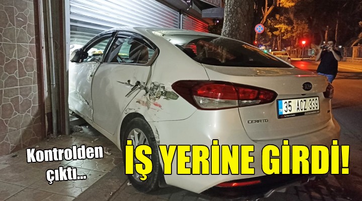 Otomobil, kepenkleri kapalı olan iş yerine girerek durabildi. Olayda ölen veya yaralanan olmazken, iş yerinde ve otomobilde hasar oluştu.