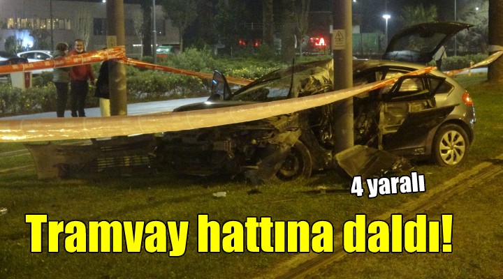 Kaza, saat 21.30 sıralarında Cemal Gürsel Caddesi'nde meydana geldi. Bostanlı'dan Karşıyaka istikametine gitmekte olan Hıdır D. (37) yönetimindeki 35 ATL 187 plakalı otomobil, sürücüsünün direksiyon kontrolünü yitirmesi sonucu tramvay hattına girerek elektrik direğine çarptı. Kazada sürücü Hıdır D. ile otomobildeki T.G., H.K. ve S.K. yaralandı.