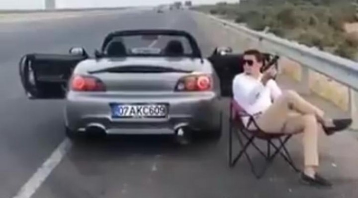 Sosyal medyada paylaşılan bir görüntüde, 07 AKC 609 plakalı lüks otomobilini otoyol kenarındaki emniyet şeridine park eden H.U. adlı sürücünün tabancayla ateş etmesi, tepkilere neden oldu.