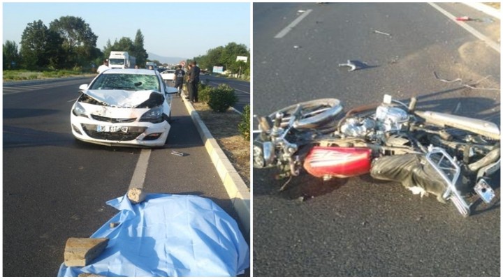 Kaza, saat 19.00 sıralarında İzmir- Ankara karayolu Ören Kavşağı'nda meydana geldi. Uşak'tan İzmir yönüne giden Doğan Karabaş (42) yönetimindeki 35 KTZ 48 plakalı otomobil, iddiaya göre aniden ters yöne girip karşı şeride geçmeye çalışan Hüseyin Çelik yönetimindeki 45 KB 9048 plakalı motosiklete çarptı.
