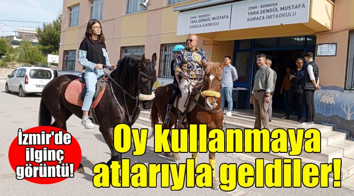 Türkiye genelinde 31 Mart 2024 Mahalli İdareler Genel Seçimi için oy verme işlemi, saat 08.00'den itibaren başladı. Seçmenler, erken saatlerde oy kullanacakları okullara gitti. Bornova'da at eğitmeni Faruk Ceren oy kullanacağı Yaka Şengül Mustafa Karaca İlkokulu'na, Bayraklı'daki öğrencisi Melisa Onuk ise Mehmet Akif Ersoy Anadolu Lisesi'ne at üstünde geldi. Bayraklı'da oyunu kullanıp, Bornova'ya hocasının yanına gelen Onuk, "At eğitimi alıyorum ve ilk kez oy kullanacağım için bugünün hatıra olmasını istedim. Çok mutluyum. Güzel bir anı olacak" dedi.