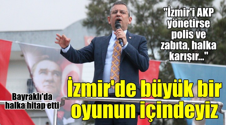 SONKALEİZMİR- CHP Genel Başkanı Özgür Özel, İzmir iş dünyasıyla buluşmasının ardından Bayraklı'ya geçip Deprem Anıtı Meydanı’nda halka hitap etti. Dikkat çeken mesajlar veren Özel, İzmir Büyükşehir Belediye Başkan Adayı Cemil Tugay ve Bayraklı Belediye Başkan Adayı İrfan Önal'a oy istedi.